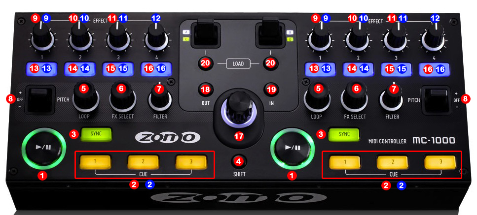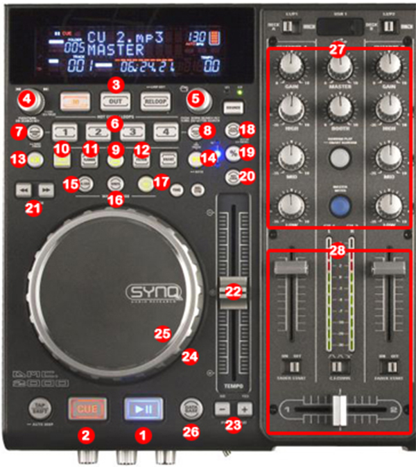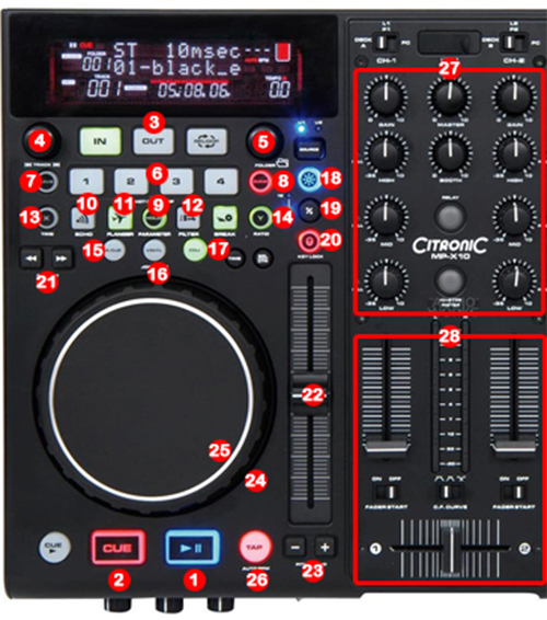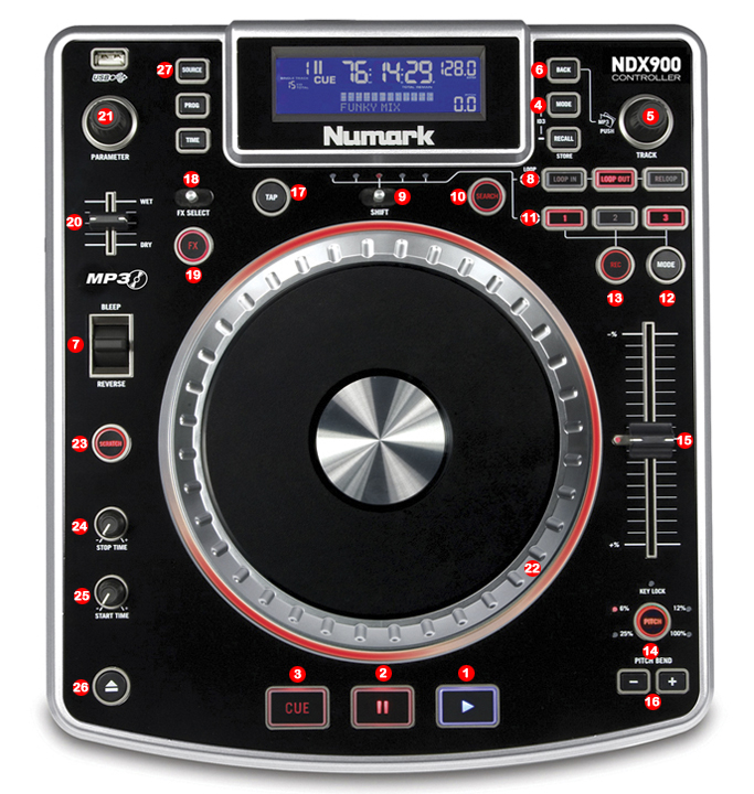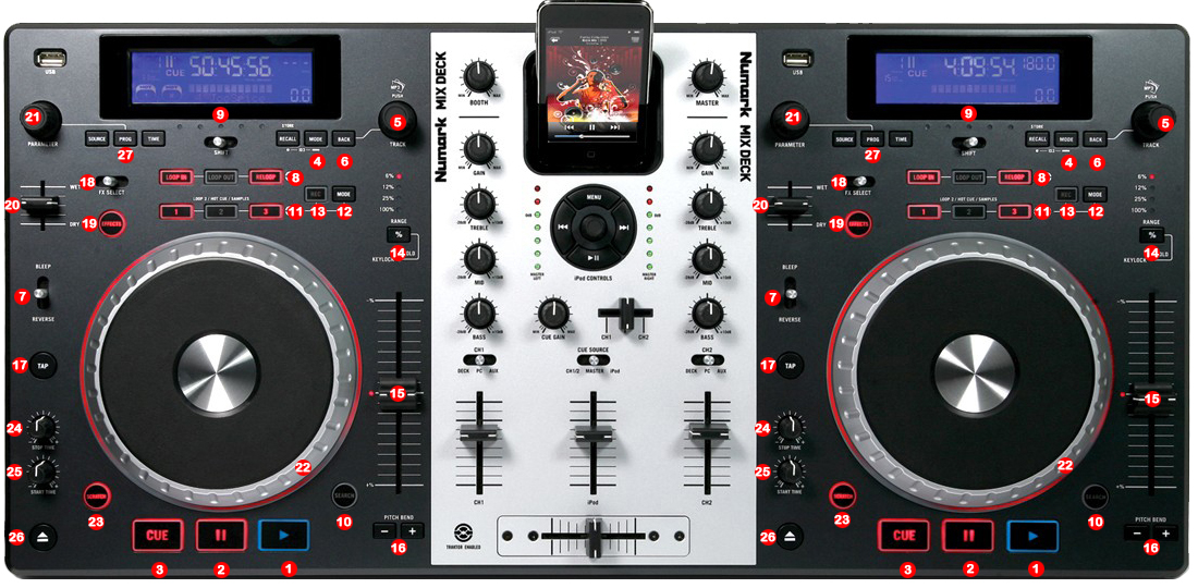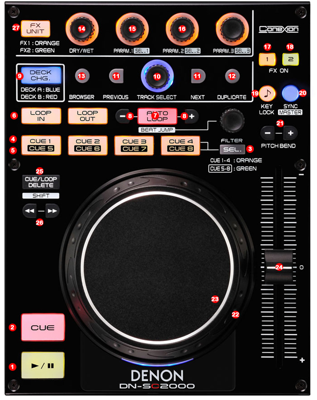 13.- DECK SELECTOR (DECK A / DECK B) (ONLY DUAL MODE)