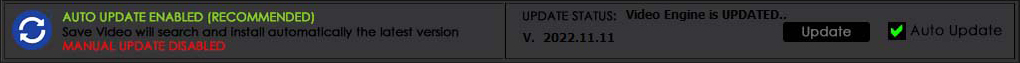 - Auto Update: Save Video will search and update automatically to the latest version. This is the recommended option and it is selected by default. This option disables Manual Update.